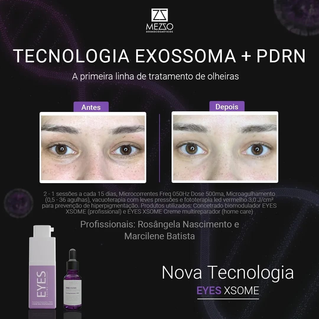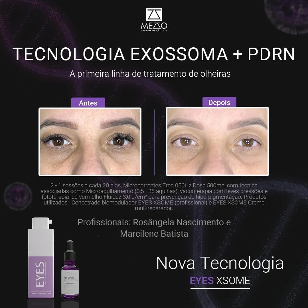 Ocorre que com a biomodulação dos Exossomas mais o PDRN, através do uso contínuo do dermocosmético concentrado Eyes Xsome, há uma
