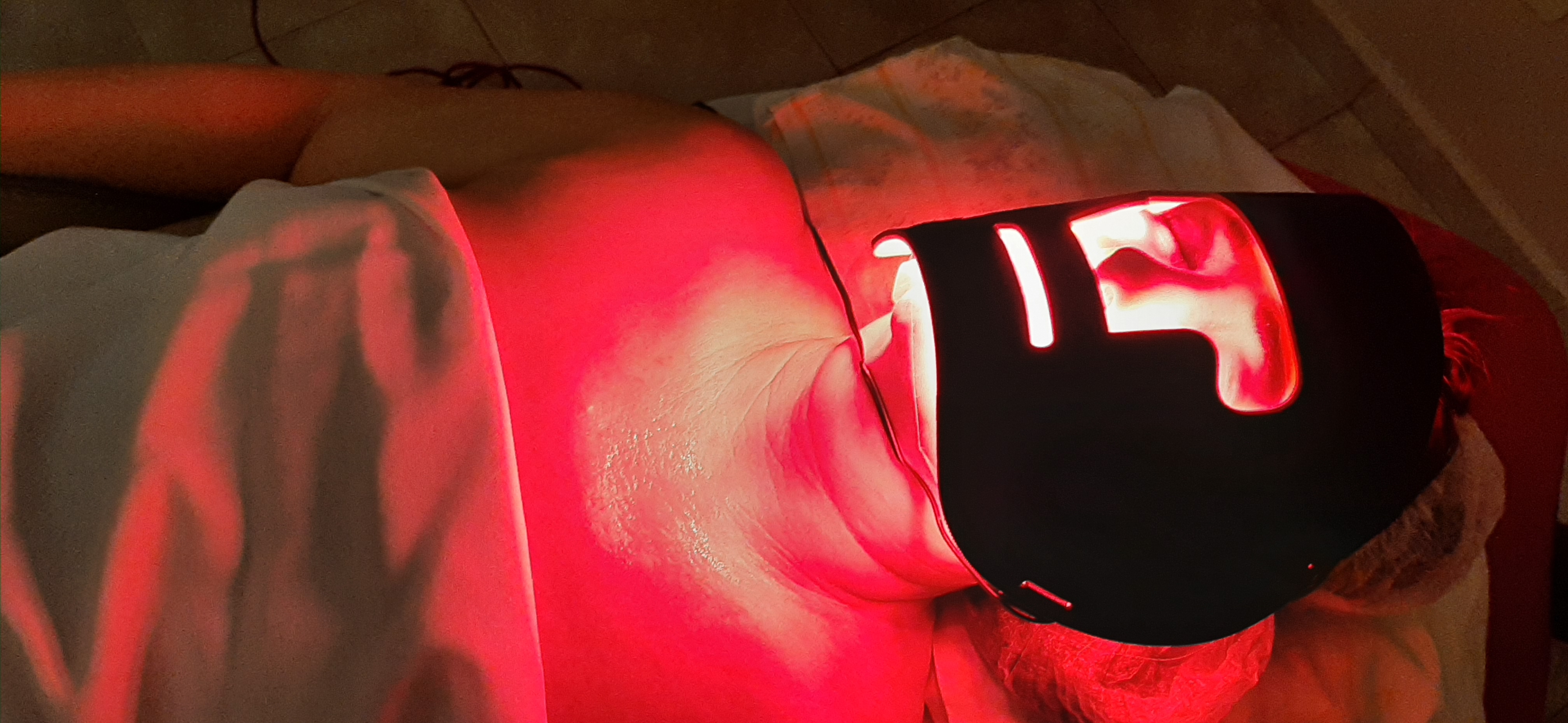 Complementa-se também, a ativação de novas proteínas de colágeno natural, com a ação do Leds de baixa potência; onde numa máscara estão acoplados estrategicamente leds que emitem luz de comprimento de onda vermelho e próximo ao vermelho, sintonizados para a ativação percutânea de todos os bioativos hidratantes e nutritivos selecionados, num tempo de 7 minutinhos apenas.